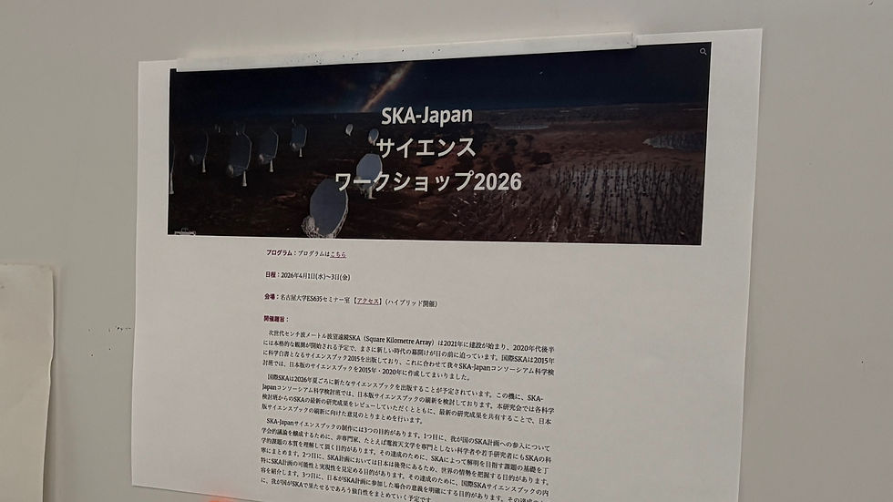 今回は2026年4月1日より名古屋大学で開催された、SKA-Japanサイエンスワークショップ2026の報告です。